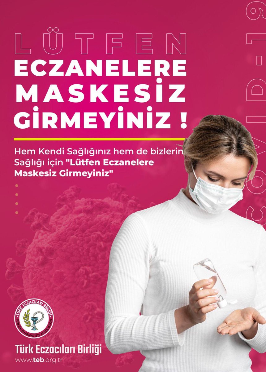 Daha önce Odamız tarafından dağıtımı yapılan afişlerden olan "Eczanelere Maskesiz Girmeyiniz" afişine ait görsel aşağıda ve ekte sunulmuş olup, ihtiyacı olan eczanelerimizin çıktı alarak kullanabileceklerini bildirir,