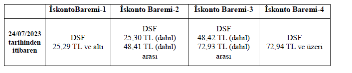 Sosyal Güvenlik Kurumu Başkanlığı Genel Sağlık Sigortası Genel Müdürlüğü tarafından 25/07/2023 tarihinde yayımlanan “İlaçlarda Uygulanacak Kamu Kurum İskontosu Baremlerinin Değiştirilmesi” konulu duyuru aşağıdaki şekildedir;