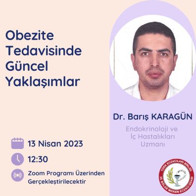 Obezite tedavisinde güncel tedavi yaklaşımları konusunda gerçekleşecek olan online eğitimimiz 13 Nisan Perşembe günü saat 12:30'da Dr. Barış KARAGÜN'ün sunumuyla gerçekleştirilecektir.