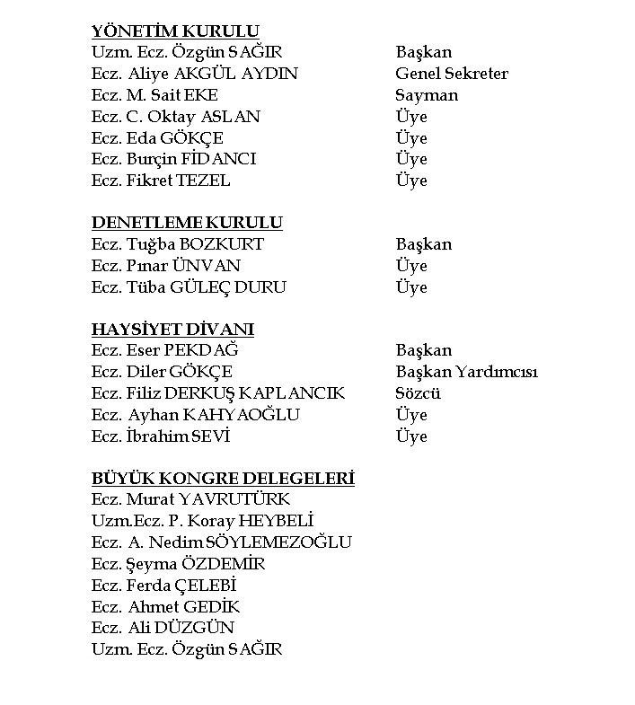 24. dönem Yönetim Kurulu, Denetleme Kurulu ve Haysiyet Divanı görev dağılımı aşağıdaki gibidir.