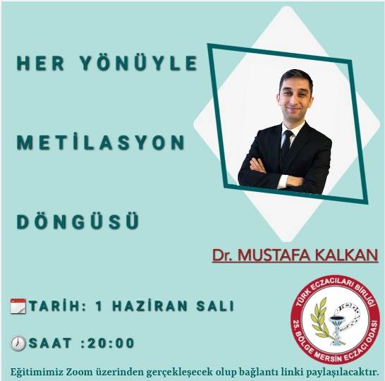 1 Haziran Salı günü saat 20.00'de, Metilasyon döngüsüne dair bilinmesi gerekenler ve kullanılabilecek takviyelerin konuşulacağı "Her Yönüyle Metilasyon Döngüsü" konulu eğitim Dr. Mustafa Kalkan tarafından online olarak gerçekleştirilecektir.