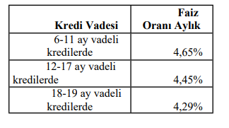 29.07.2024 tarihinden itibaren geçerli olmak üzere kredi limit ve faiz oranlarını içeren tablomuz ektedir.